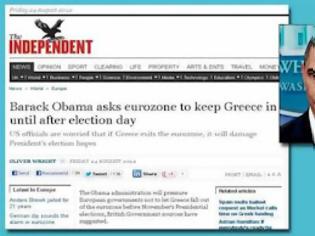 Η κυβέρνηση Obama φέρεται να ζητά από Ευρωπαίους αξιωματούχους να αναβάλλουν τυχόν αρνητικές αποφάσεις για την Ελλάδα μετά... τις προεδρικές εκλογές της 4ης Νοεμβρίου, σύμφωνα με δημοσίευμα της Independent. Σύμφωνα με το δημοσίευμα, ο Λευκός Οίκος ανησυχεί ότι οι εξελίξεις στην ευρωζώνη θα επηρεάσουν σημαντικά το αποτέλεσμα της κάλπης στις ΗΠΑ. Οι Αμερικανοί αξιωματούχοι ανησυχούν ότι αν οι κυβερνήσεις της ευρωζώνης αποφασίσουν (μετά το κρίσιμο Eurogroup στις 8 Οκτωβρίου) ότι η Ελλάδα δεν έχει κάνει αρκετά ώστε να επιτύχει τους στόχους για τη μείωση του ελλείμματος και δεν δώσουν τη δόση του δανείου, ύψους 31 δισ. ευρώ, αυτό αυτομάτως θα οδηγήσει την Ελλάδα εκτός ευρώ, λίγες εβδομάδες πριν τις προεδρικές εκλογές της 6ης Νοεμβρίου.